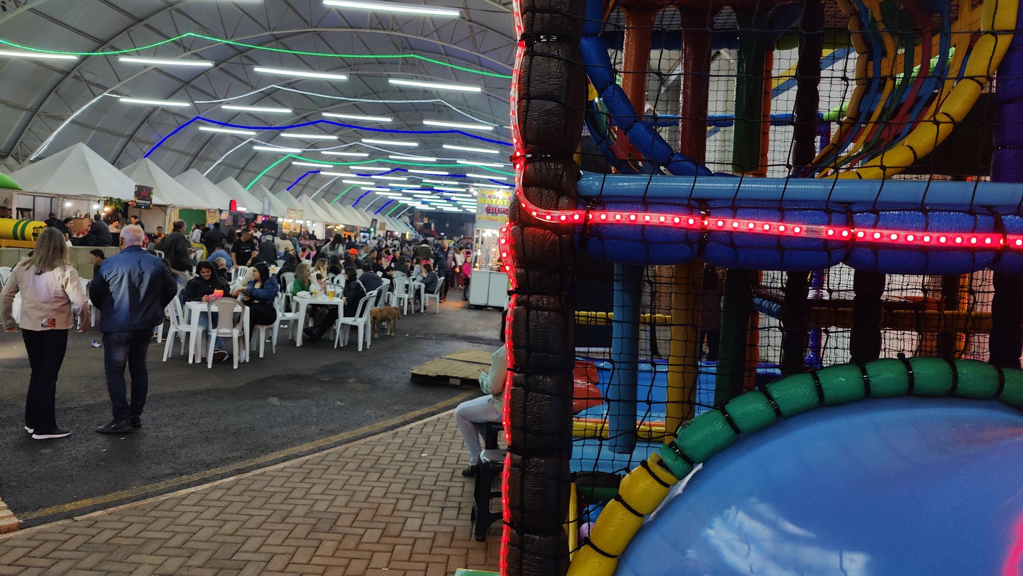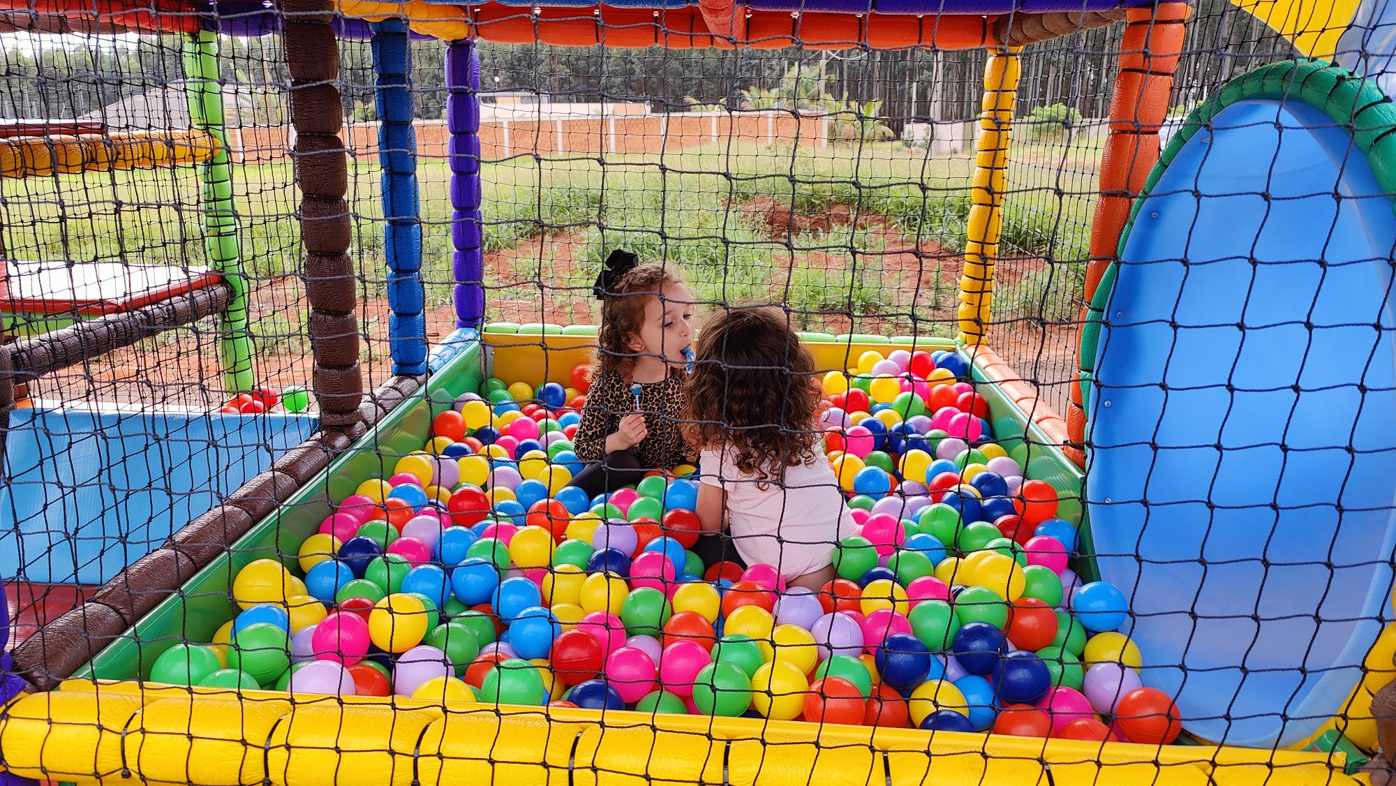 O brinquedão é destinado a todas as crianças que pesem até 75kg e que meçam até aproximadamente 1,40 mts.